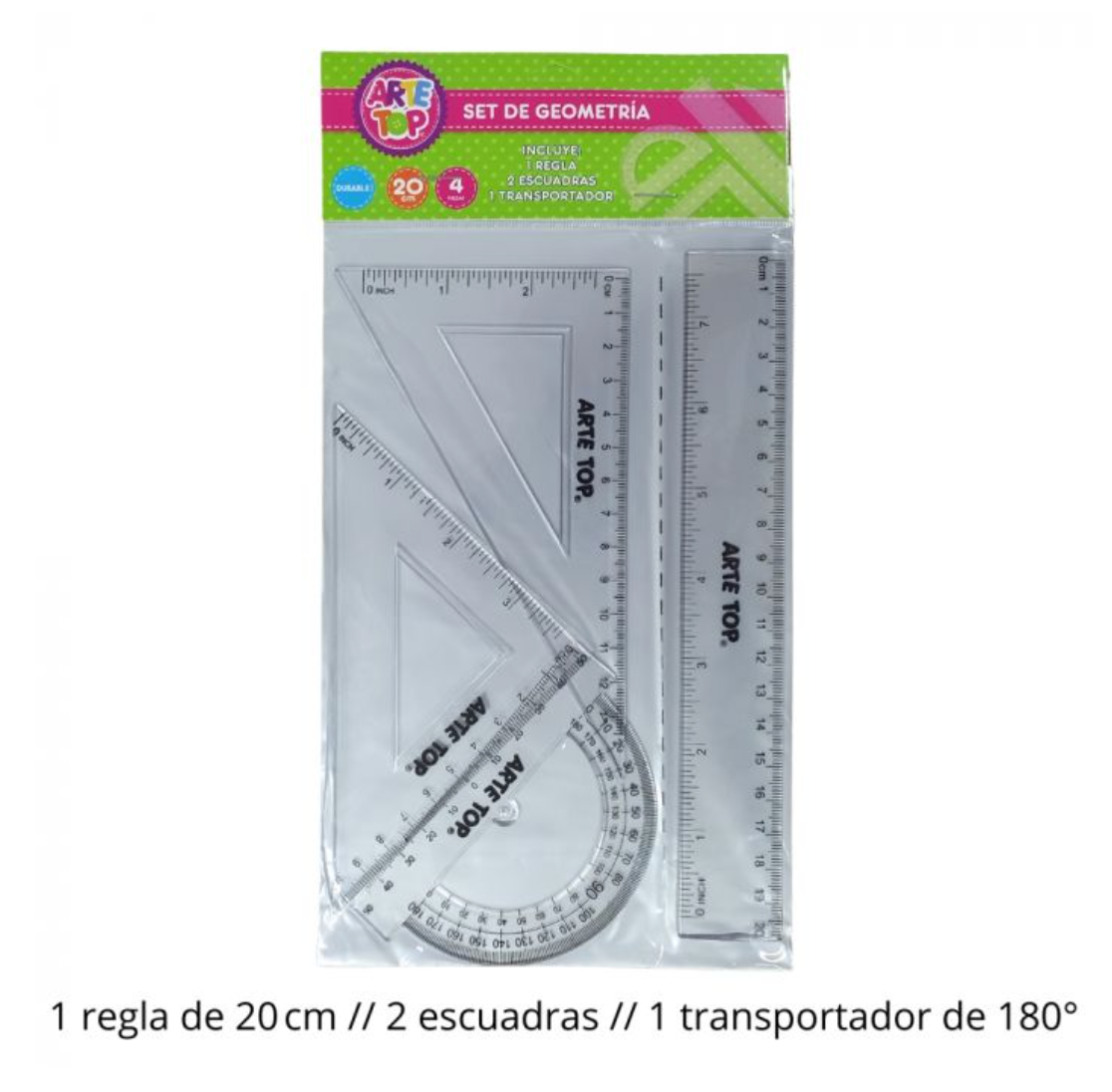 Transforma tu escritorio en un laboratorio de geometría con este set de reglas de 20 cm. Contiene 4 piezas que facilitan la medición y trazado de figuras geométricas. Lleva tu precisión y creatividad al siguiente nivel con este imprescindible conjunto de herramientas.
